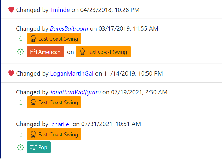 - This list includes Voting on Dances and Tag editing, it doesn’t include every change made by the system.
