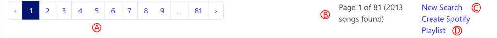 - An additional indication of which page you are on and how many pages there are. In addition this text shows the total number of songs found by the search